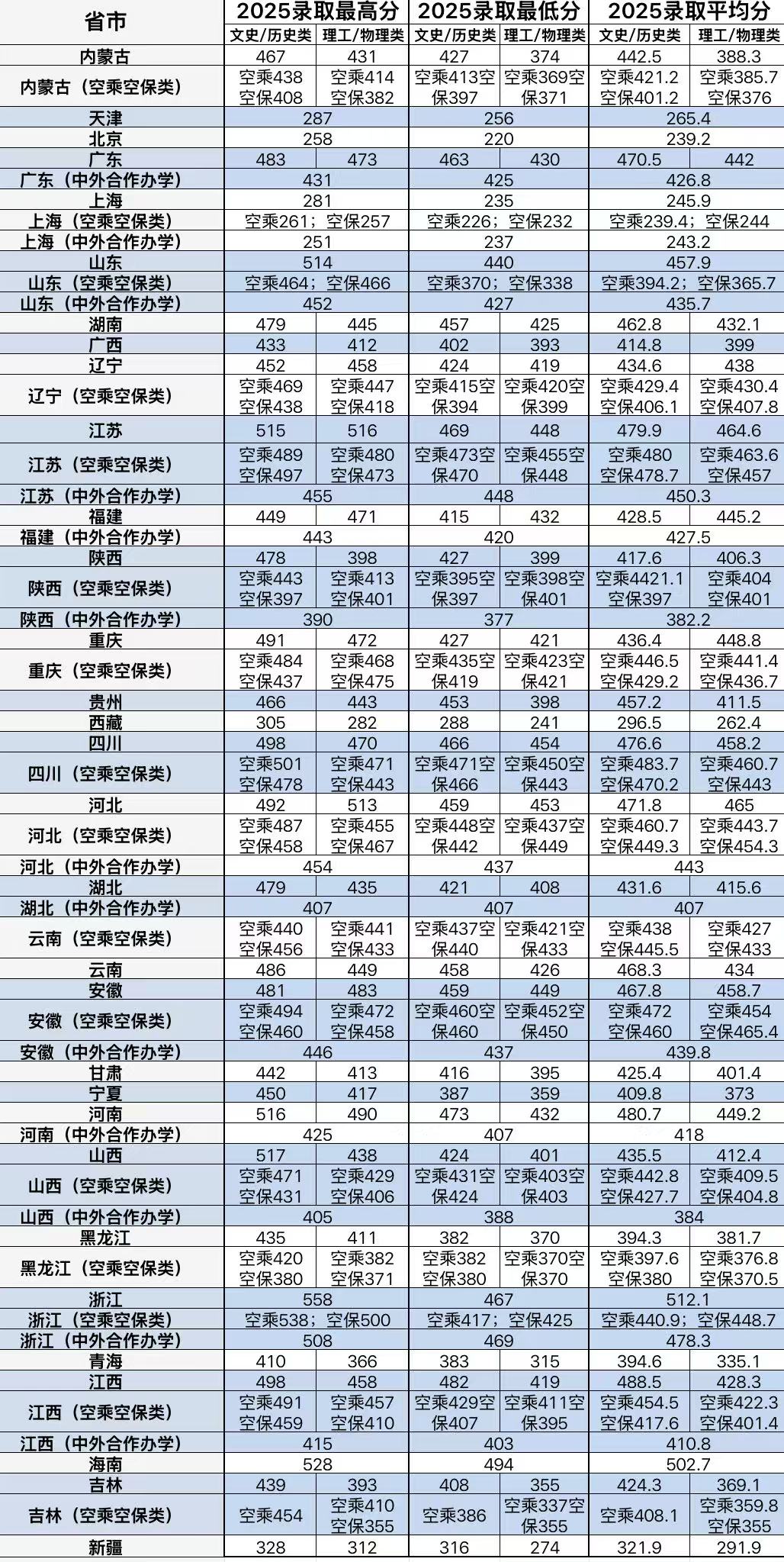 2025年全国统招各省市录取分数线